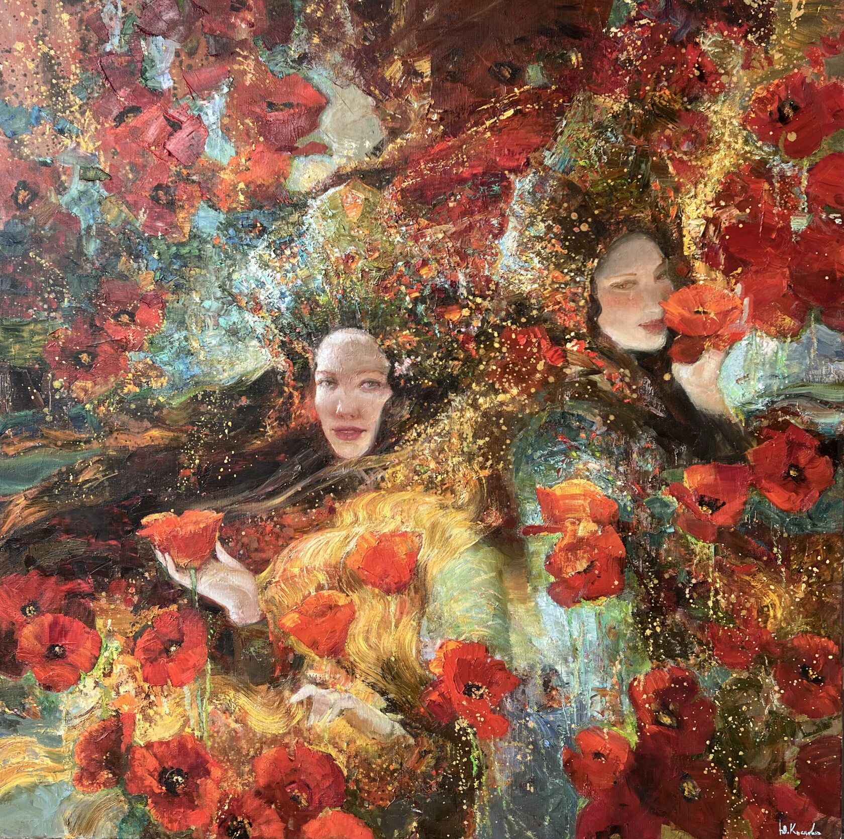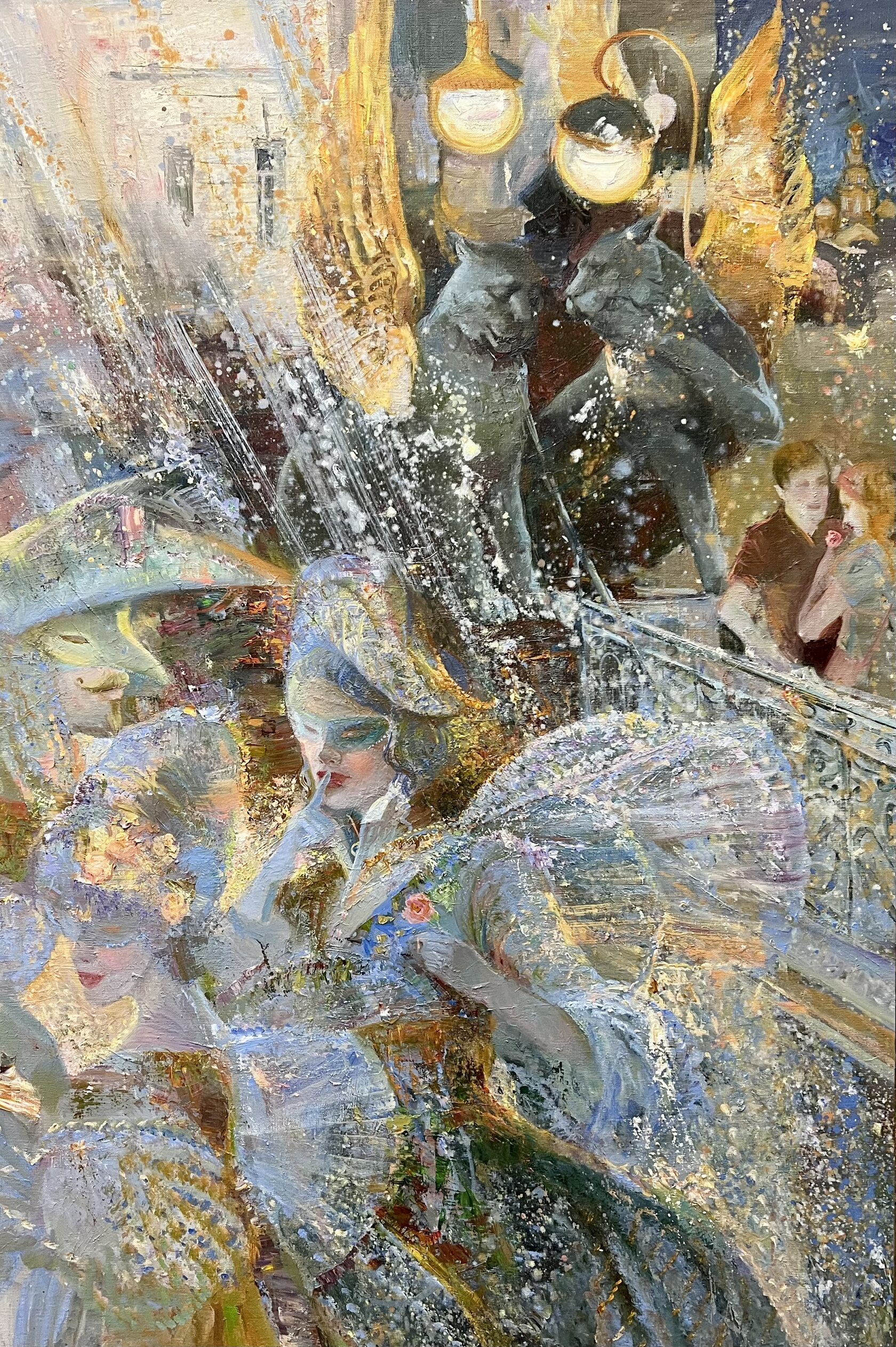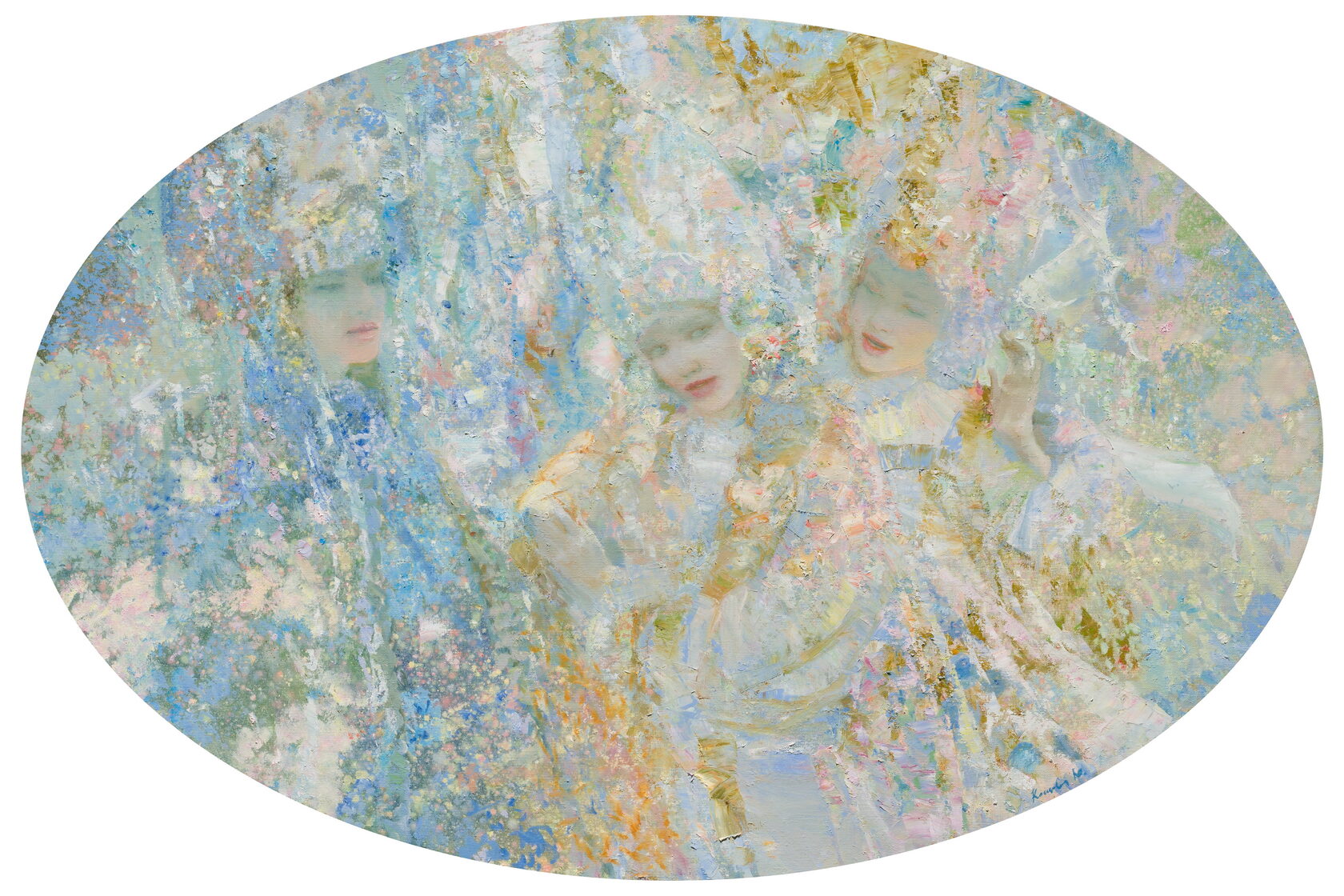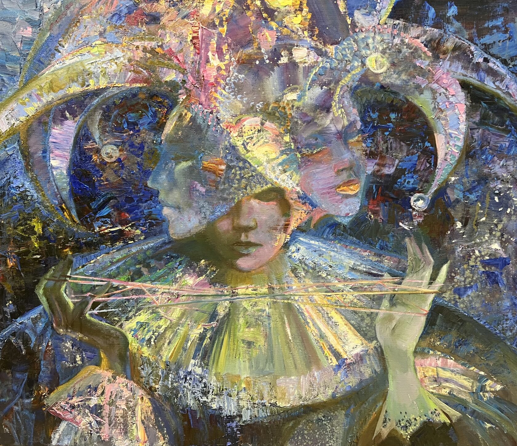 Цвет и форма приобретают декоративность, мазки краски ложатся на поверхность холста мозаично, напоминая огранку искрящихся самоцветов. В новой серии, свет, как и в ранних импрессионистичных работах, остается важным элементом – игра света оживляет персонажей и создает пространство внутри картин. При этом, Юлия Косцова остается верна реалистической традиции, тщательно прописывая лица и руки персонажей, что рождает ощущение вневременности.